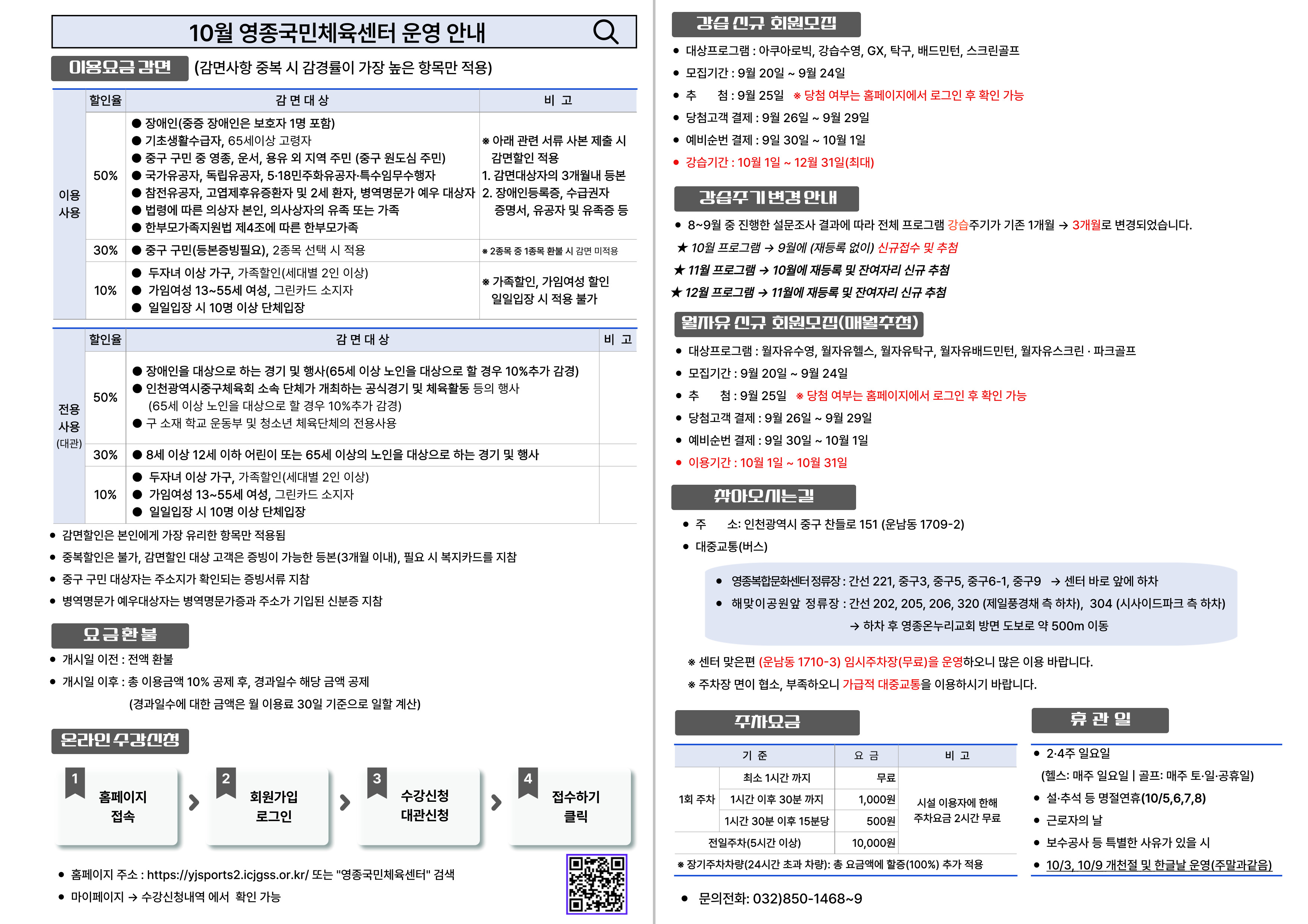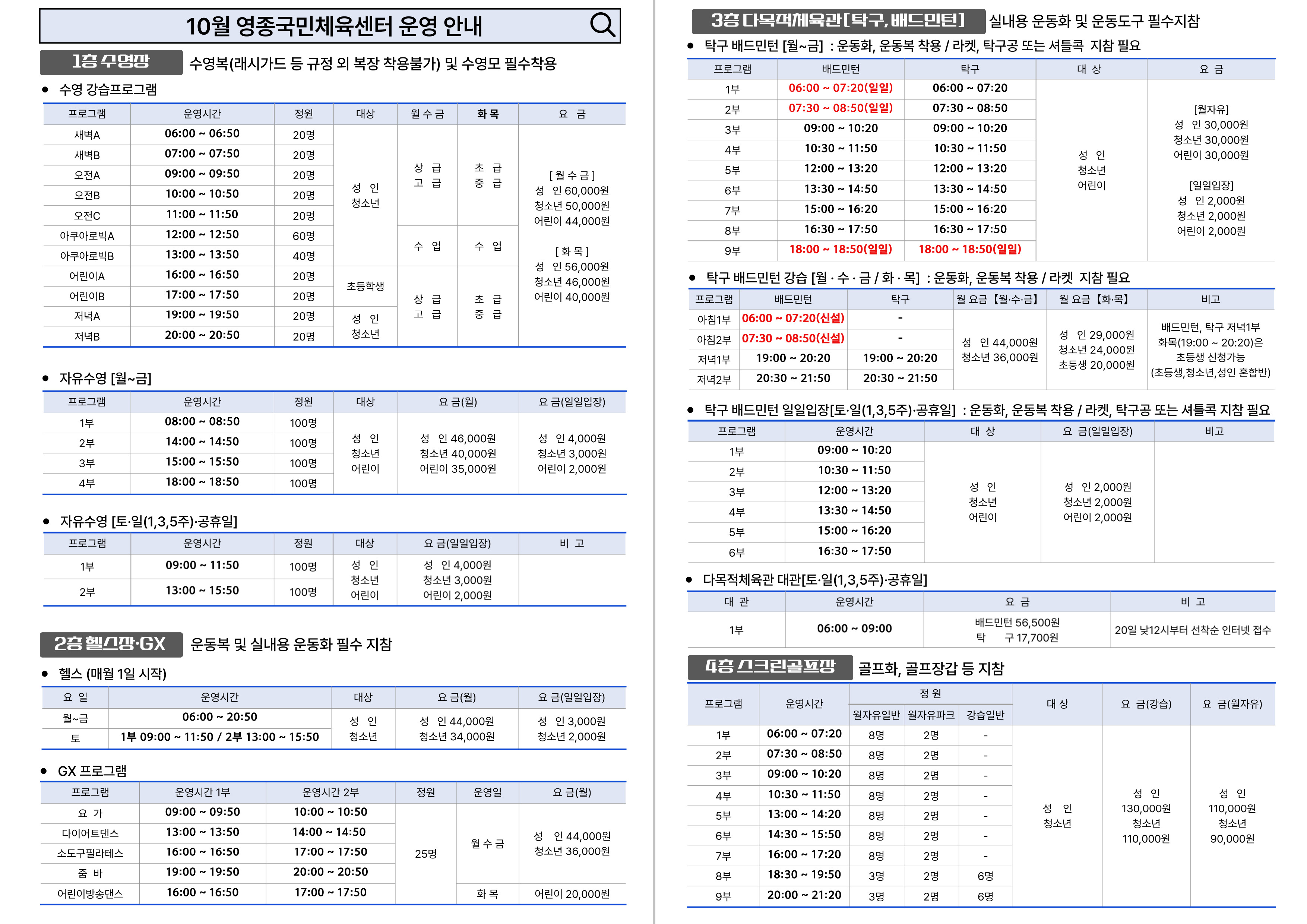 2025년 10월 센터 체육 프로그램을 아래와 같이 알리오니 많은 관심 부탁드립니다.