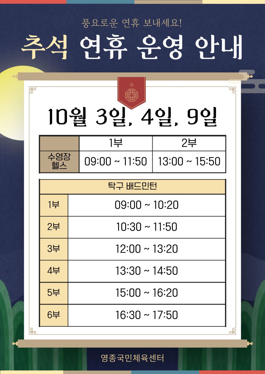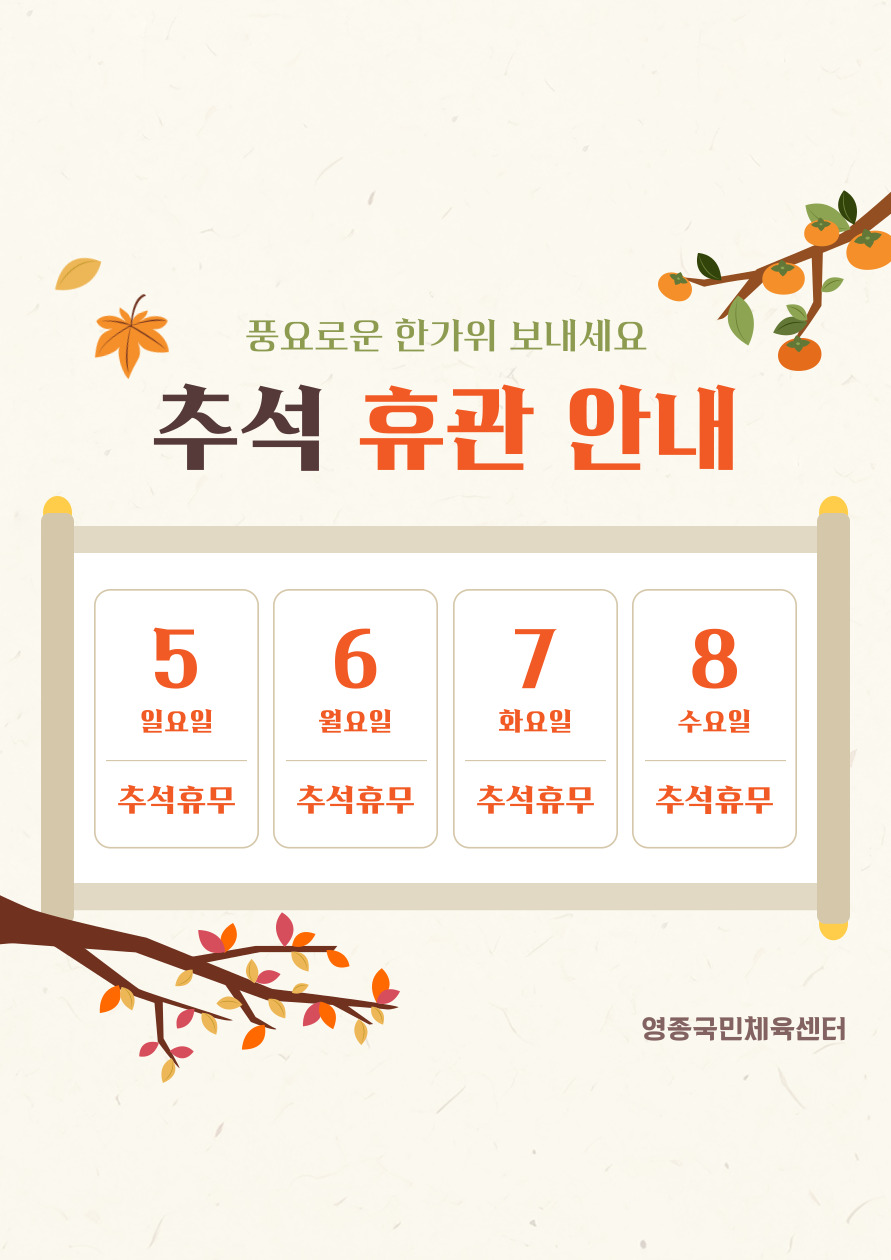 3. 10월 5일 ~ 10월 8일은 휴관입니다.